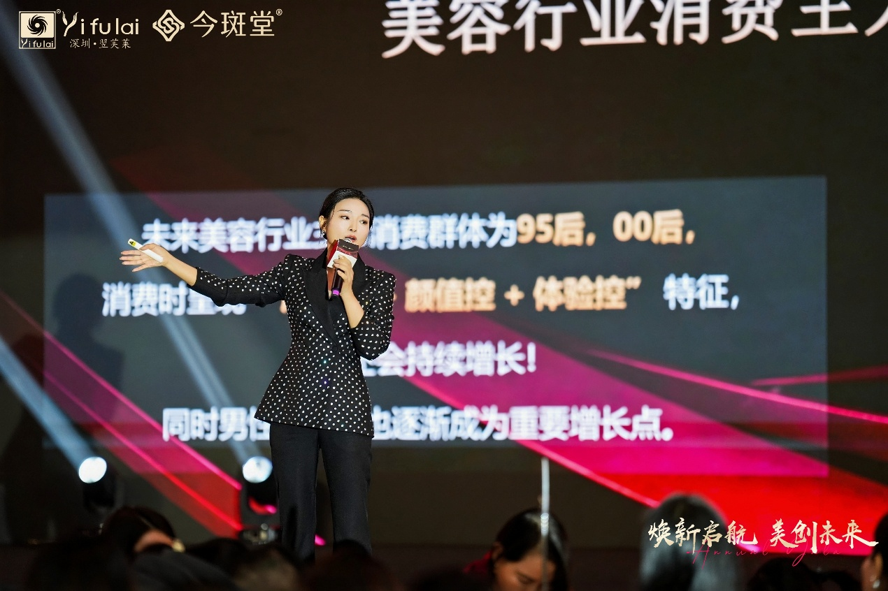 何沁琳女士登臺深度解讀新品項及產品體系,用通俗易懂的語言拆解美白科技的核心密碼,層層揭秘背后的研發匠心。網紅店模式正式發布,全新渠道創新理念引發全場熱議!